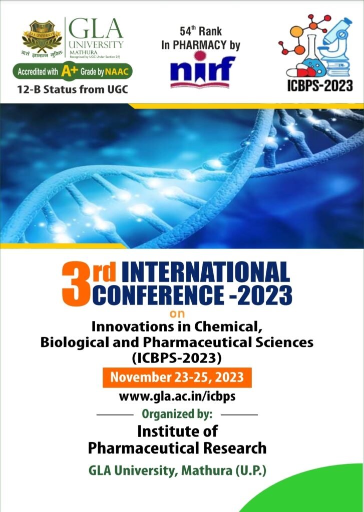 Invited to the 3rd International conference on ”Innovations in Chemical, Biological and Pharmaceutical Sciences (ICBPS-2023) at GLA University, Mathura, India