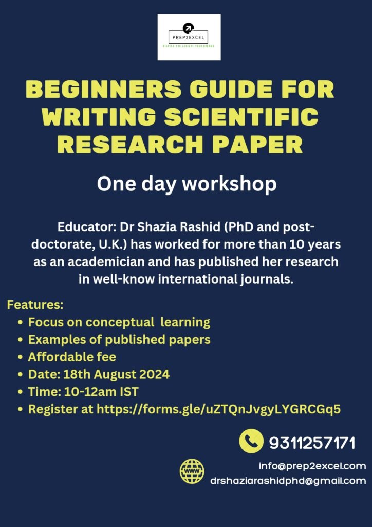 One day workshop on ‘BEGINNERS GUIDE FOR WRITING SCIENTIFIC RESEARCH PAPER’.