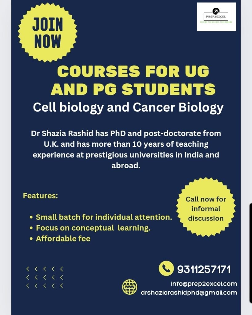 Courses for UG and PG students in Cell Biology and Cancer Biology.